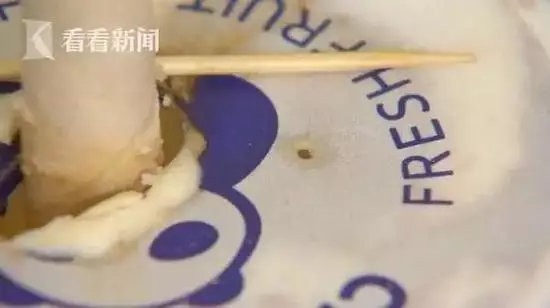 發現奶茶里有牙籤後,龐女士仔細查看了奶茶外包裝,果然,杯子封蓋上有個較小的洞。龐女士非常擔心,因為她本人和孩子在不知情的情況下就喝了三分之一,健康問題無疑最令她擔憂。