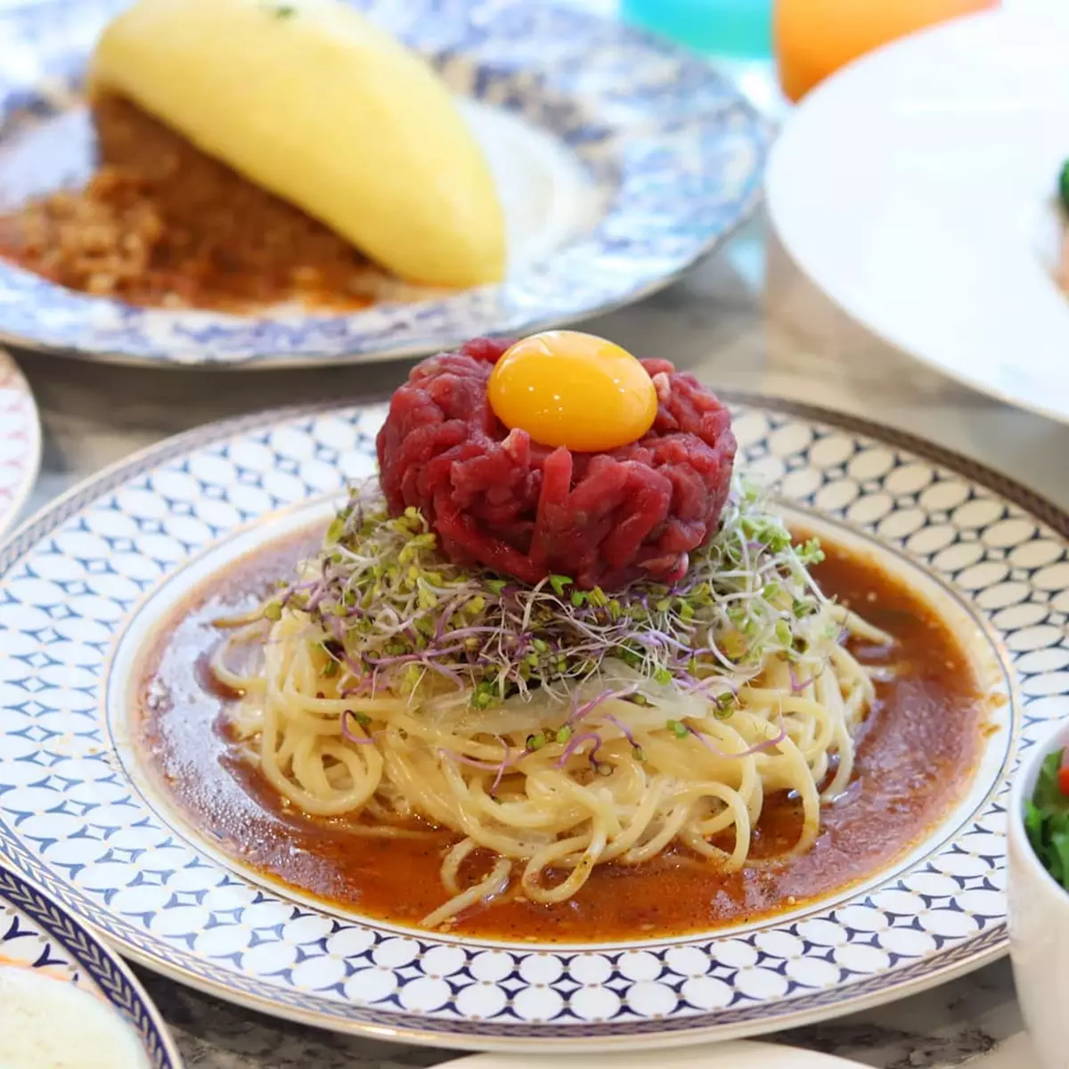 除了紫蘇油生牛肉意粉外,Palette Hannam的蛋包飯也是相當有名,以白汁和咖哩作調味,雞蛋烹調時間不多不少剛剛好,一切就能做到爆漿流心的效果,讓人食指大動!
