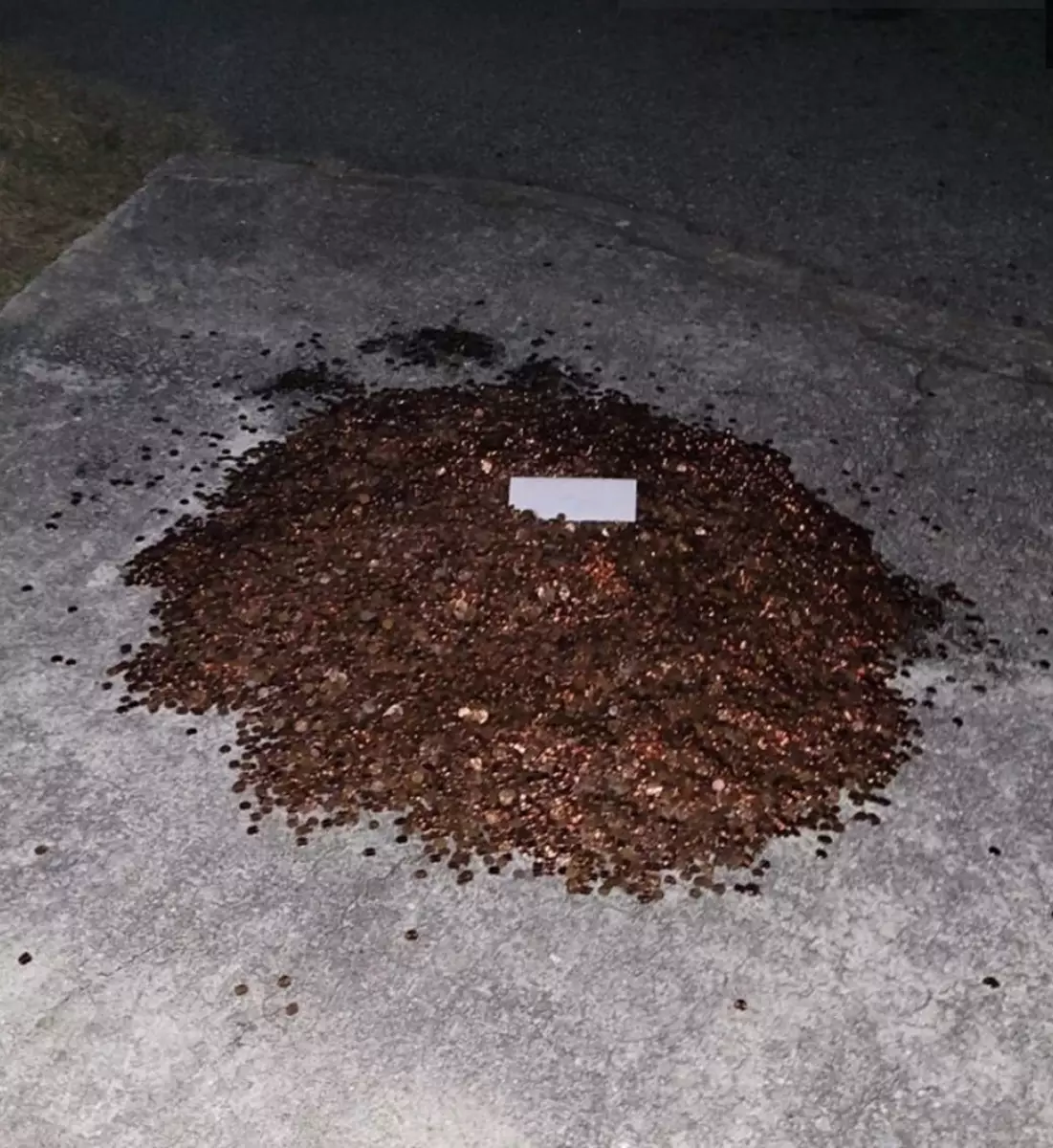 不過就在3月中旬,Flaten和女友Olivia Oxley在其車庫地上發現一大堆硬幣,細看下始發現為超過9萬個1分錢美金硬幣,上面更沾滿機油,根本難以拿起,硬幣上方還插著一張寫著「f*ck you」的薪資單。