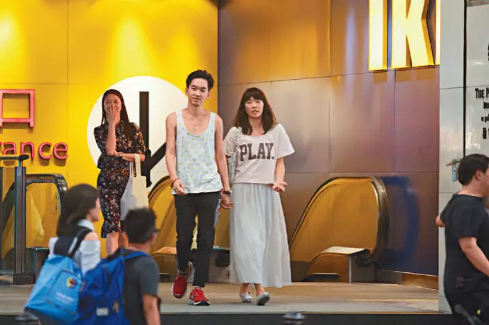 身穿背心的少爺占全程做聽眾,一直聽住老婆意見挑選傢俬。在短時間內,佢地影低心水傢俬,然後走去顧客服務部等候查詢。