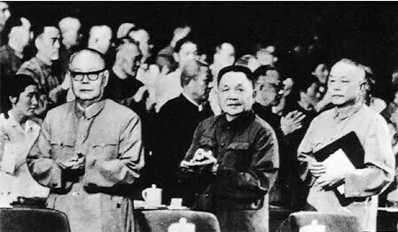 葉劍英、鄧小平、李先念(左起)在十一屆三中全會主席台上。(資料圖)