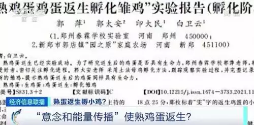 近日,一篇「熟蛋返生孵小雞」的論文在網上引起關注。該論文全稱《熟雞蛋變成生雞蛋(雞蛋返生)——孵化雛雞的實驗報告》,由《寫真地理》雜誌刊發,作者郭平和白衛雲,單位是鄭州市春霖職業培訓學校。