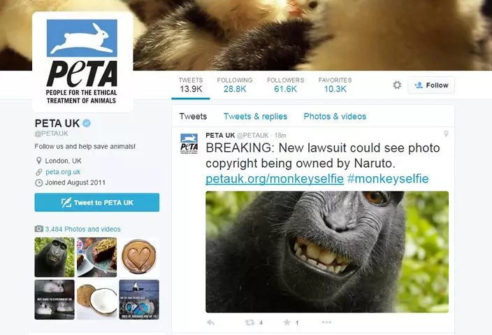 英國一名攝影師在印尼探險,一隻稀有六歲猴子好奇心大發走近把玩相機,無意中自拍多幅照片。自拍照在一本動物書籍上刊登,動物權益組織PETA提出訴訟,指攝影師侵犯猴子版權。