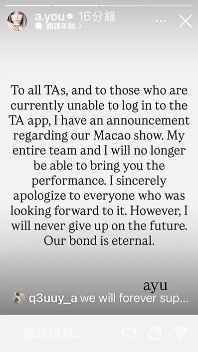田蕊妮稱老公在台灣工作,來回兩地需要隔離,所以來不到都沒有辦法,之後再紀錄下來讓他欣賞就好,或等之後重演再捧場。