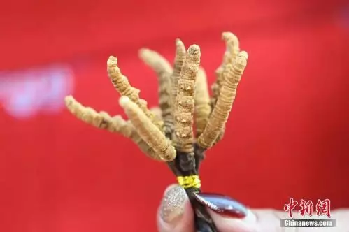 圖為青海館展示的來自玉樹的冬蟲夏草。中新社記者 崔楠 攝