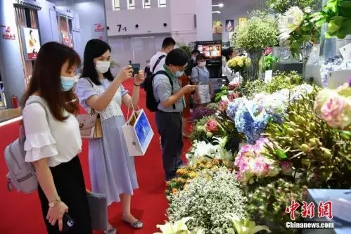圖為雲南館展出的各種鮮花吸引參觀者。中新社記者 崔楠 攝