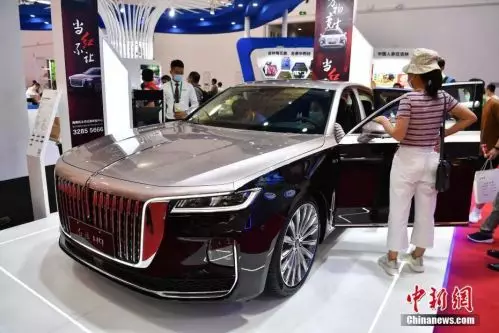 圖為吉林館中展示的紅旗轎車受到參觀者關注。中新社記者 崔楠 攝