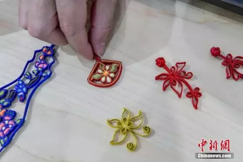 圖為龍鳳旗袍第四代傳承人江滿宗展示精美的旗袍盤扣。中新社記者 駱雲飛 攝