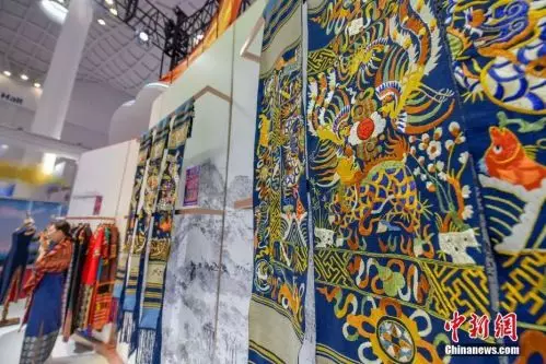 內蒙古館的關鍵詞是「特色」。參展企業有的帶來了以草原特產白蘑菇為主原料製作的白蘑醬系列產品,有的展出了自有品牌羊絨服飾,還有的以蒙古族服飾為核心,構建了從創意設計、製作生產到手工藝培訓,再到資料庫建設的完整產業鏈。