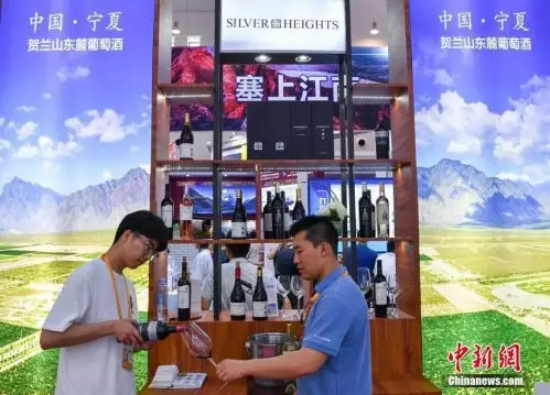 圖為來自賀蘭山東麓的銀色高地酒庄葡萄酒在寧夏館展出。中新社記者 崔楠 攝