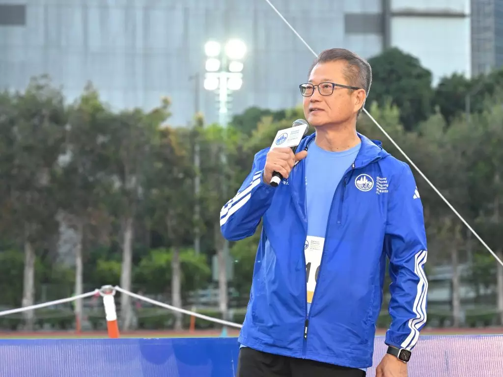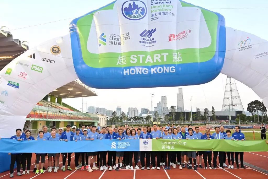 香港馬拉松早上舉行,多名政商界人士參與賽程兩公里的「領袖盃」賽事,財政司司長陳茂波主持起步禮。