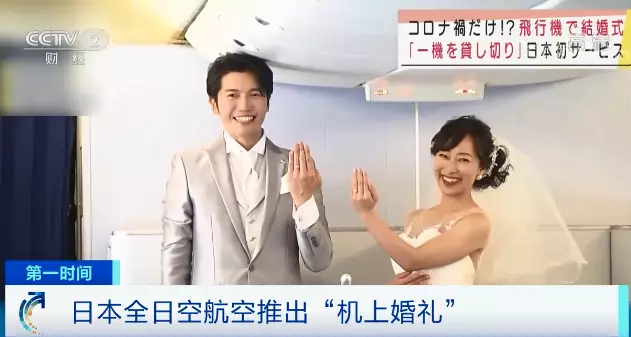 疫情下,航空公司挖空心思維持生計,日本全日空航空和一家婚慶公司聯合推出「機上婚禮」服務。