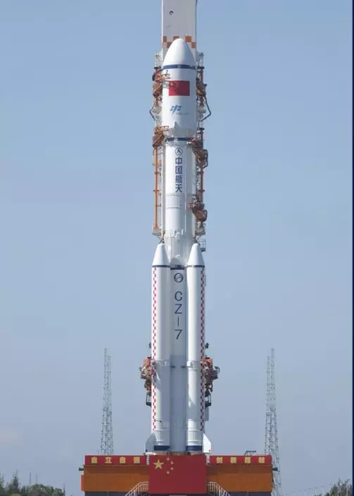 根據中國載人航太工程辦公室消息指,搭載天舟二號貨運太空船的長征七號火箭已準備轉運到海南文昌發射場發射區,代表發射在即。