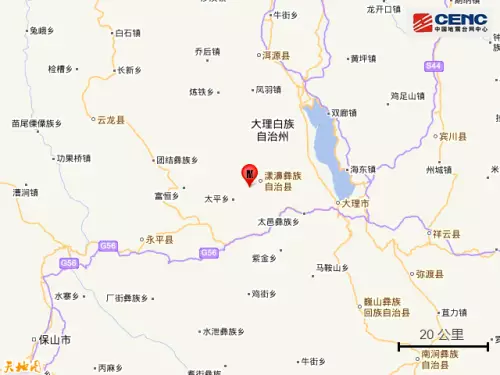 5月18日20時20分29秒,在漾濞縣太平鄉附近(北緯25.6度,東經99.9度)發生2.7級地震,震源深度6千米。