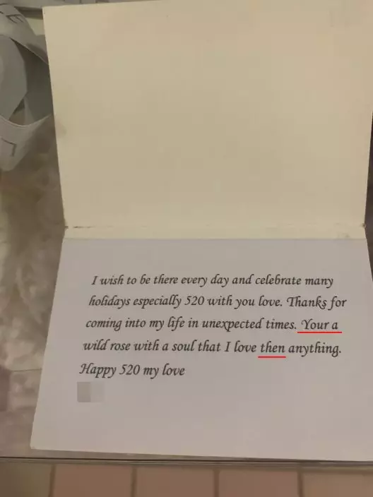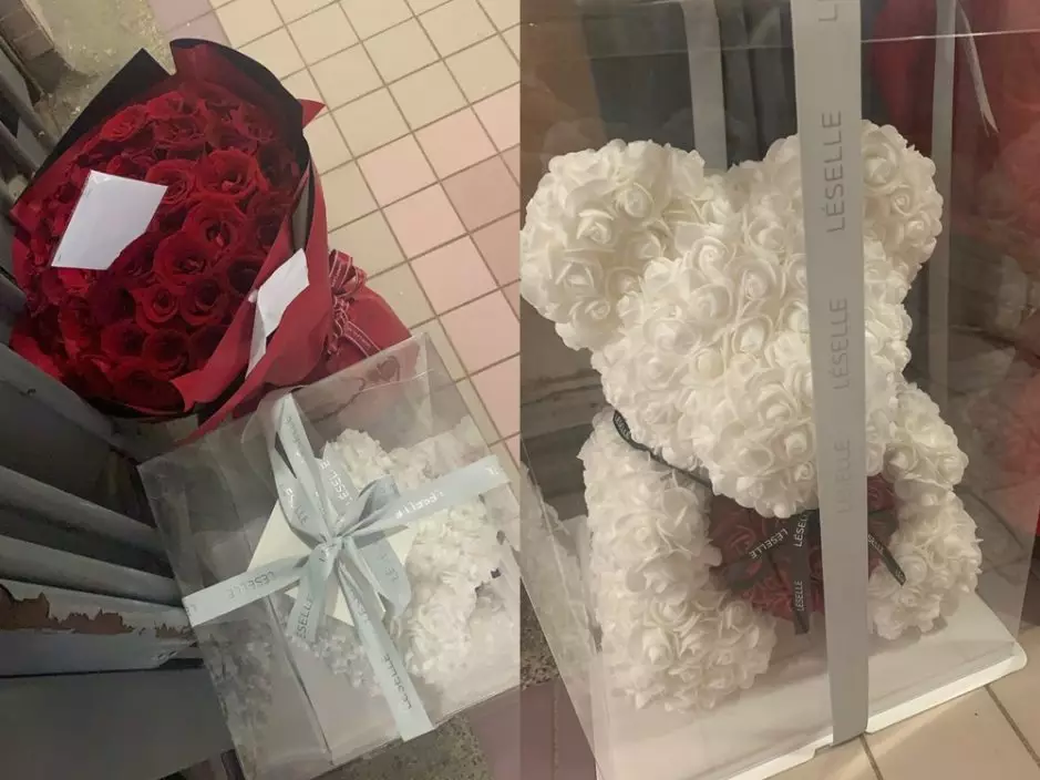 該網民於「連登討論區」發文表示,上班前發現家門口突然出現了一束紅玫瑰及一隻由白玫瑰砌成的小熊,並留下一張沒有上款的卡片,卡片上更寫了「『Your a』 wild rose」及「I love 『then』 anything」等疑似錯字。