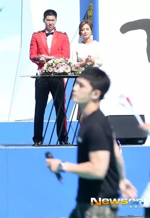 南韓男團「東方神起」成員允浩和JYJ的在中,今日終於在軍隊活動「2015年地上軍慶典」中隔空合體,擔任現場MC的允浩遠遠望住在中的身影,讓不少「豆花飯」(允浩、在中的粉絲名)大呼「好虐!」