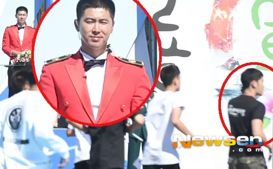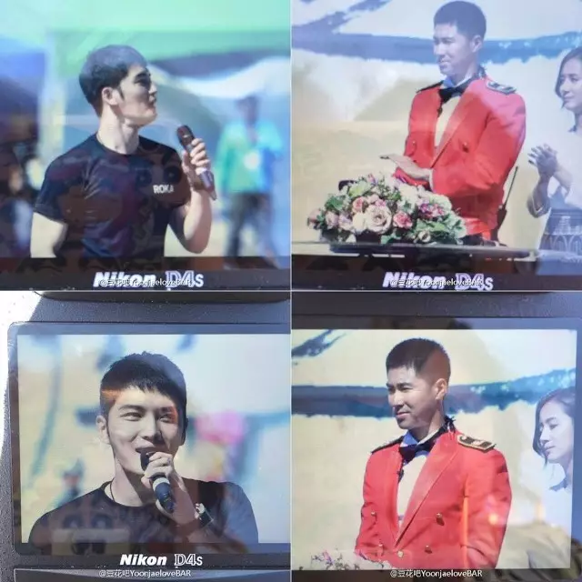 今天在台上擔任慶典MV的允浩身穿一身軍服,目不轉睛地從台上看著昔日隊友在中的演出,更被粉絲目擊一直在為在中的演出鼓掌,而在中則回敬台上的允浩淡淡微笑。
