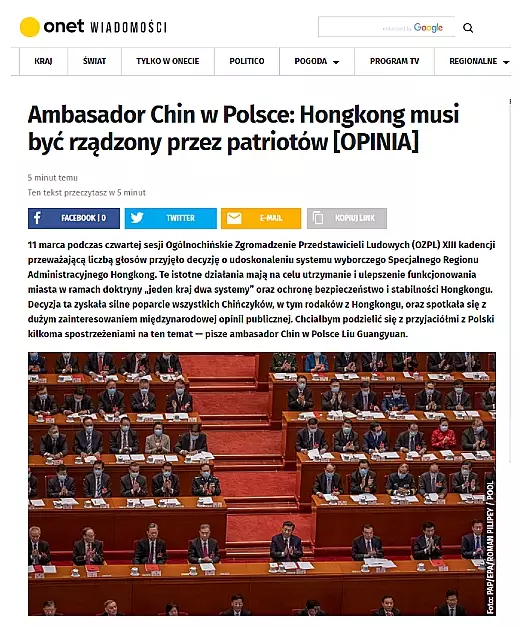 劉光源波蘭大型門戶網站Onet撰文撐完善香港選舉制度