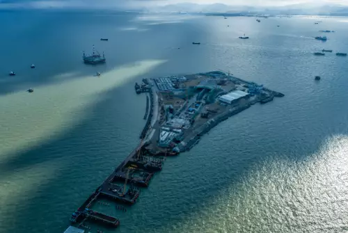 深中通道西人工島主線現澆隧道敞開段正在進行施工作業。通訊員供圖