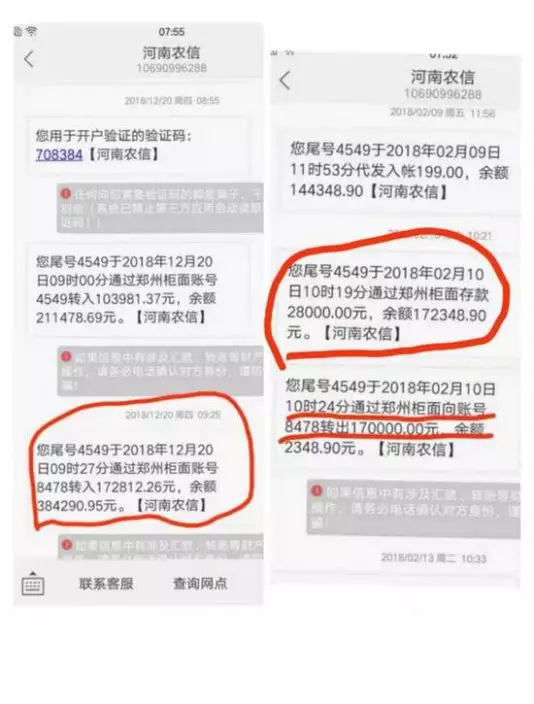「我到白象分理處讓工作人員幫我調出我名下一本通存摺手續,他們不給調並制止往下查詢。」周女士說,後來在朋友的幫助下,新鄭市城關鎮支行(白象分理處的上級銀行)出示給她兩張存單,她沒有去白象分理處櫃枱辦理過業務,怎會冒出兩張存單?而且銀行流水有10多筆存款都在新鄭市白象分理處,而她只在2018年4月10日存過一次,還是ATM機存的。