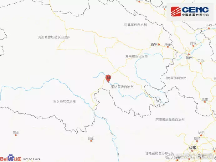 據中國地震台網正式測定,2021年5月22日02時04分(北京時間),在青海省果洛州瑪多縣(北緯34.59度,東經98.34度)發生7.4級地震,震源深度17公里。此次地震震中距黃河鄉駐地7公里、距瑪多縣城38公里,距果洛州政府駐地175公里,距西寧市385公里。