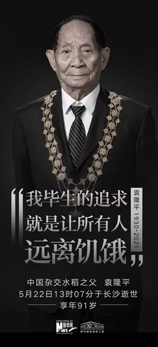 袁隆平享年91歲。新華社圖片