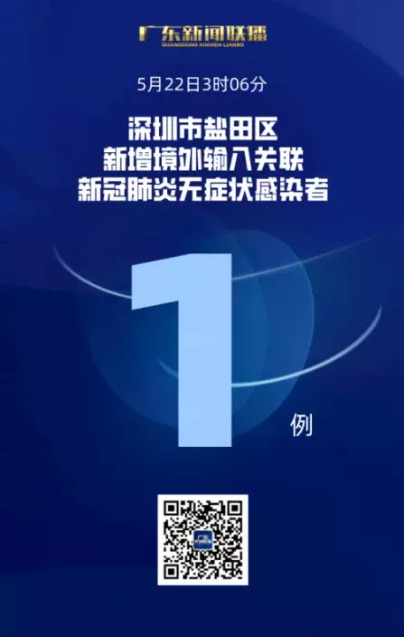 5月22日,深圳市鹽田區新增一例境外輸入關聯新冠肺炎無癥狀感染者,系在對5月21日確診無癥狀感染者穆某相關重點人群進行排查時發現。相關情況如下: