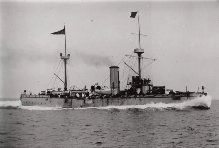 正在打撈的致遠號,最後一場戰役由艦長鄧世昌率領,可惜被日艦圍攻下打得半殘,打算撞向日艦同歸於盡,致遠號被日艦打沉,他與軍艦沉沒於波濤之中,與全艦官兵壯烈殉國。