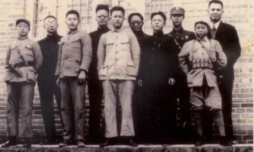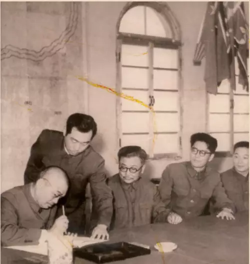 當年的大寨民兵組織,中間是陳永貴和郭風蓮。