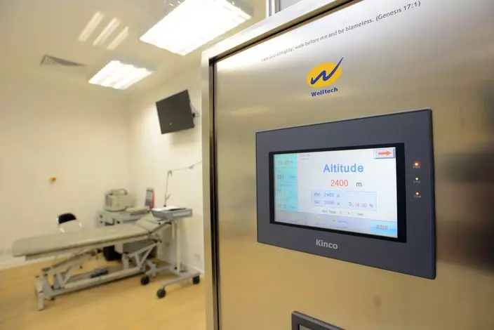 浸會大學設立本港第二個「低氧實驗室」,研究人類在不同氧氣濃度環境下的體能表現及所受影響,結果發現九成參與者在模擬海拔三千米高缺氧環境下做間歇性運動,會造成產生心肌損傷,預料實驗室日後可提供顧問服務,為市民測試是否適應前往高原旅行或工作。