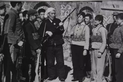 當年的大寨民兵組織,中間是陳永貴和郭風蓮。