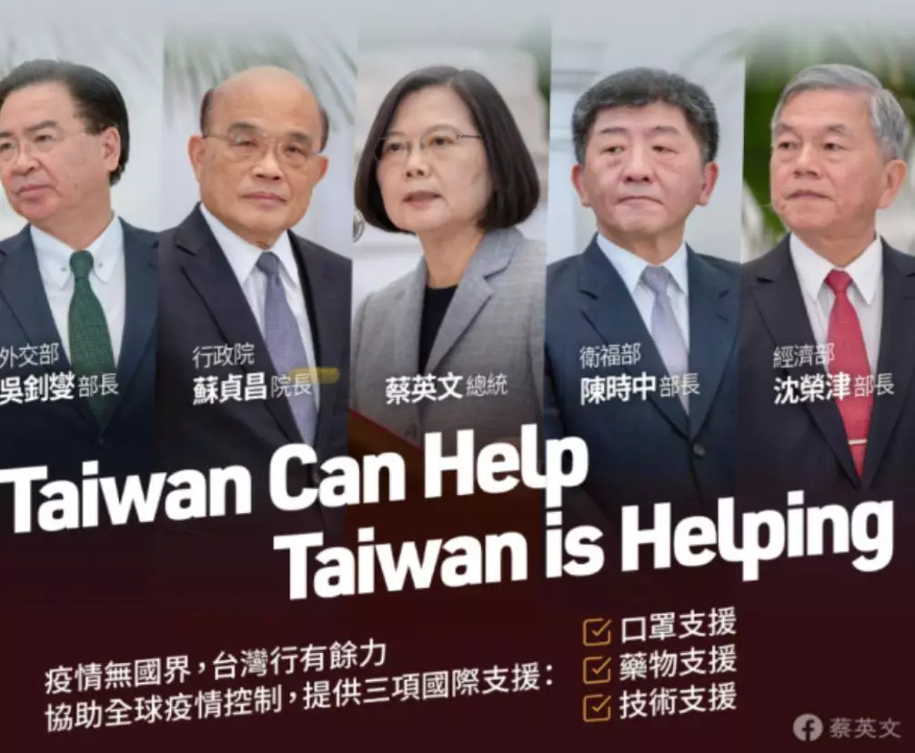 蔡英文四月初曾在FB貼文:「Taiwan Can Help Taiwan is Helping」