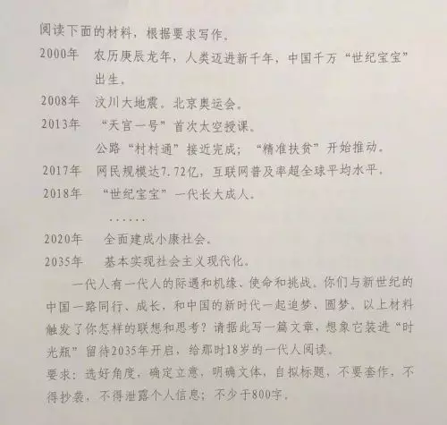 【注意】①角度自選,立意自定,題目自擬。②明確文體,不得寫成詩歌。③不得少於800字。④不得抄襲、套作。