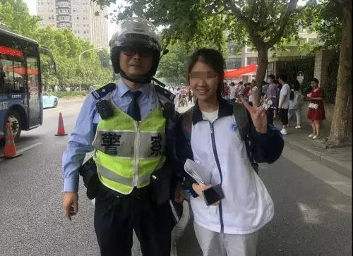 每年高考,總是不乏交警送考的事例,今年也不例外。