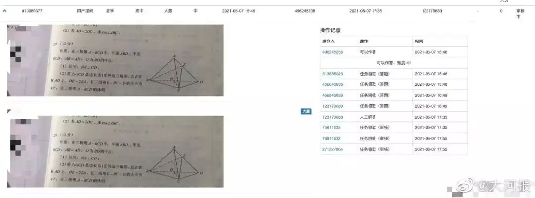 6月7日下午,小猿搜題工作人員監測後台時發現,某用戶通過手機拍照搜索疑似高考真題,App未提供任何搜索結果,考試結束後,經確認,工作人員第一時間向有關部門舉報,並將後台截圖和數據等線索打包提供給相關部門供核查。該題目從未在前端顯示,未以任何形式泄露。