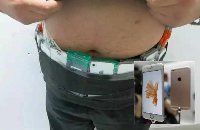《廣州日報》報道,內地「十‧一」黃金周長假最後一天,7日晚上9時許,一名身型肥胖中年男子經羅湖入境深圳,隨身只得一個手提袋,但經過海關查驗區時,神色緊張,步伐加快,因而遭關員截查,檢查行李時並無異常,但被帶入房搜身時,卻發現男子腹部纏著30部iPhone 6s Plus。
