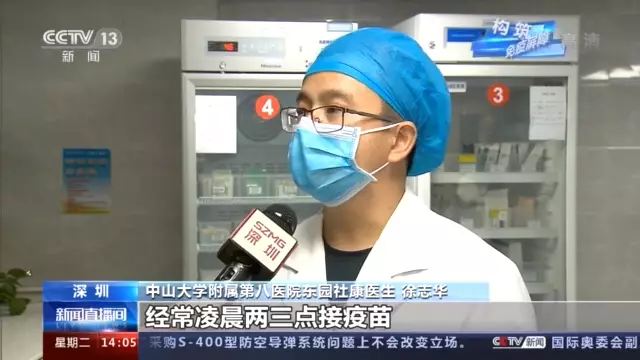 中山大學附屬第八醫院東園社康醫生 徐志華: (疫苗)隨到隨接,經常凌晨兩三點接疫苗。運輸疫苗的時候我們要核對溫度,疫苗的批號、訂單號,這些都簽字,責任到人。
