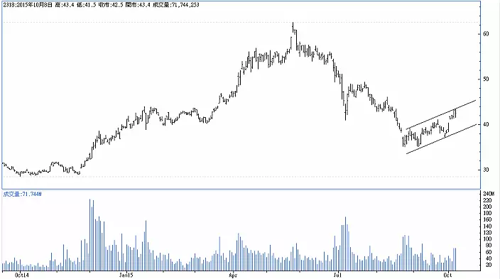 查看平保的股價圖,今年5月升上最高位62.583元(高位時一拆二),9月跌至全年最低位35.2元,但仍遠高於一年前的大約29元,可見大市急跌,由於平保業績有增長,沒有插穿去年的低位,平保仍是一隻增長型的股票。平保在9月觸底以後,股價逐潮形成一個小型上升軌,雖然上日收市回落,但走勢仍然不錯。