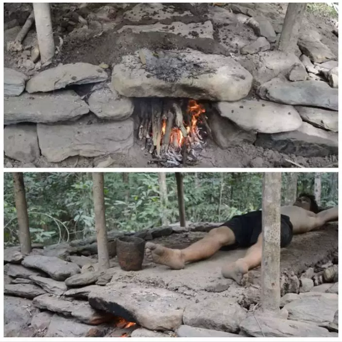 這名賓夕凡尼亞州的「野人」,利用了一百天,先用石頭自製砍伐等工具,再逐步實踐野外原始建築技術,所有材料取自天然,不難看得出原始智慧:混合泥土整形,烘乾後,再用自製小小圓窯來燒四小時,就成為瓷磚,用作製作屋頂,滴水不漏。另外亦透過小火爐連接床位製作成一個保暖系統。