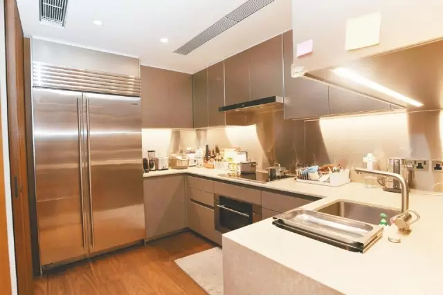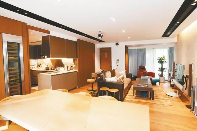 事不宜遲,立刻帶各位走訪這個騰皇居II低層C室,實用面積1282方呎,據了解,業主為單位斥資千萬布置,開門後,可見廳堂修長且寬廣,裝潢時尚,客廳即使放上長形沙發及茶几後,仍保留有充裕活動地方,加上採用帶有香檳金色系的家具,為一室添上奢華美感。移步至飯廳,8人長餐桌置中擺放,旁邊更有紅酒櫃,方便閒時舉杯小酌,品味生活。另廚房則改為半開放式設計,拉闊空間感。
