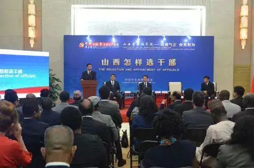 2017年6月,中聯部曾舉辦過「中國共產黨的故事——全面從嚴治黨」專題宣介會,在宣介會“山西怎樣選幹部”研討會環節,晉中市委組織部班子成員模擬召開部務會,再現了聽取考察情況彙報、研究提出平遙縣長建議人選的工作情景。
