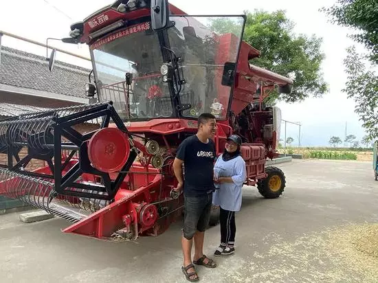 ▲ 陝西省寶雞市金台區大槐樹村,張盼和姜花站在用省下的彩禮錢新買的收割機前。 (南方周末記者 劉怡仙/圖)
