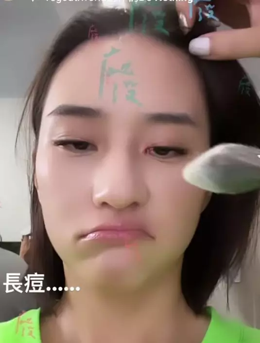 因為唔夠瞓,超蓮面上出咗粒痘痘。