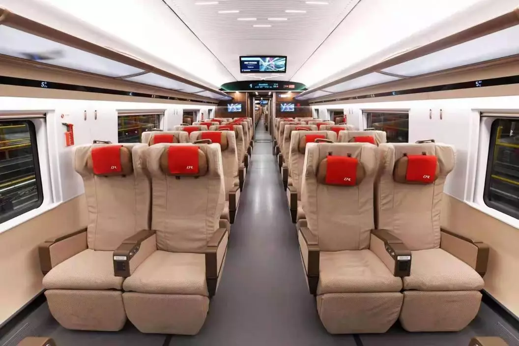 走進車廂,雖然座椅佈局沒有變化,但每個座椅都根據人體工程學進行了優化,乘坐更舒適。二等車廂的座椅除了保留以前座椅下方的充電設備,椅靠背上也增加了USB充電介面,小桌板杯托的凹槽加深,水杯放著更安全;一等座車廂,座椅增加了可調節頭靠、電動腿靠等;商務座車廂座椅交錯佈置,還配備了支持手機投屏功能的智能交互終端,私密性、便捷性和舒適性都得到提升;無障礙車廂配備了更寬闊的通過門、無障礙衛生間和輪椅放置區等。