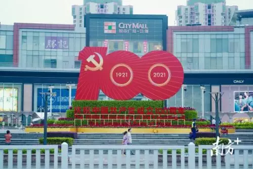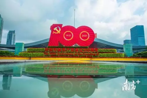 為營造濃厚慶祝建黨百年節日氛圍,福田區共選取轄區內12個展現深圳魅力的標誌性點位,設置了以中國共產黨成立100周年慶祝活動標識為主題的花雕景觀。