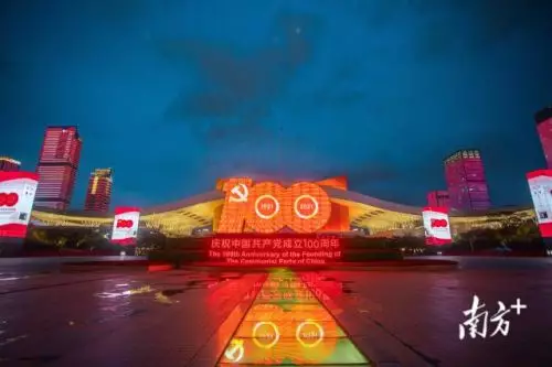 為慶祝建黨100周年,深圳市福田區特色主題花雕、「中國紅」燈光秀近日「上線」。