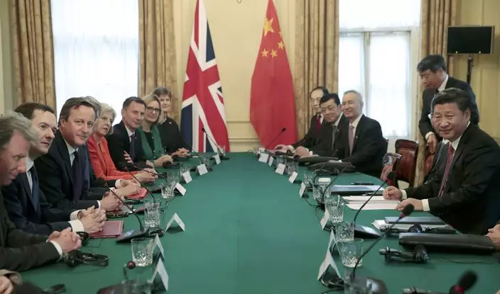 習近平說,中英面對二十一世紀全球全面夥伴關係,共同開啟持久、開放、共贏的中英關係黃金時代,共創兩國關係的美好未來。他說訪問期間達成一系列重要成果,與卡梅倫見證簽署政府與企業間的部分合作文件,包括中國企業參與英國「欣克利角」核電站項目,將為雙方深化務實合作發揮示範作用。