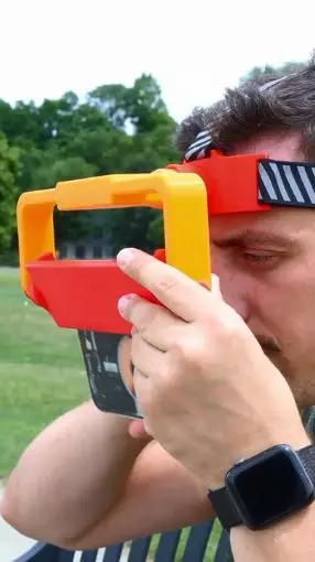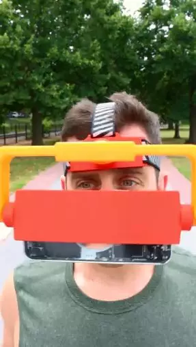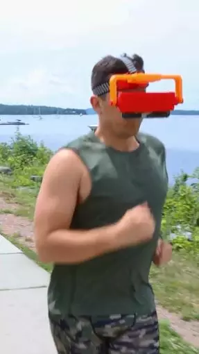 外國網民「rightcoastguy」日前在Reddit討論區分享短片,表示自己發明了一個虛假的產品,以便一邊跑步一邊看電視。從短片可見,他將手機卡在一個如同VR穿戴裝置的膠製固定架上,再將固定架套到頭上,就像戴上帽子一樣。