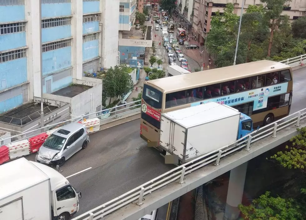 今早近8時,一輛貨車沿屯門公路向屯門方向行駛,至近荃灣柴灣角時,與一輛巴士相撞,意外造成3名女子受傷及不適,包括一名孕婦。