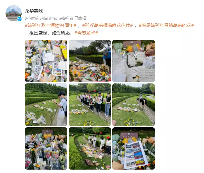 上海市龍華烈士陵園是陳延年、陳喬年等烈士的長眠之地。連日來,民眾自發前往龍華陵園祭奠陳延年等烈士,烈士墓前擺滿了鮮花、信件等。